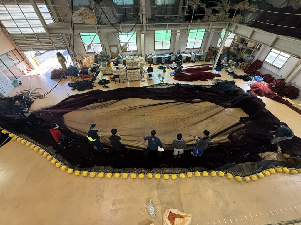 網地の組み合わせ、ロープの選定、浮子や鉛の配置、補強方法など、細部まで職人が手作業で調整し、強さと操網性を両立させています。